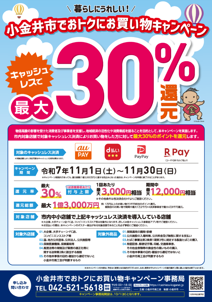 小金井市キャッシュレス決済 30%還元キャンペーン!